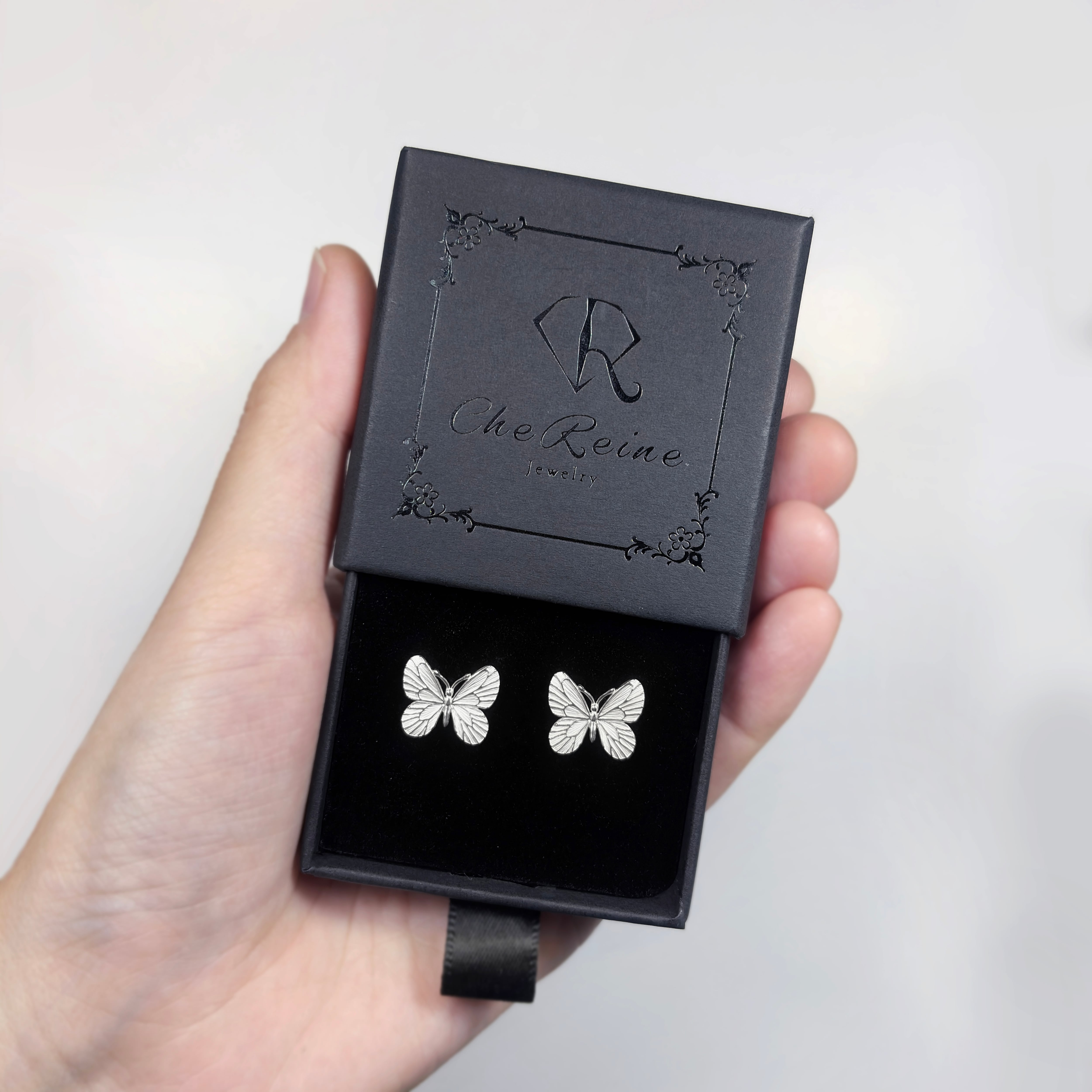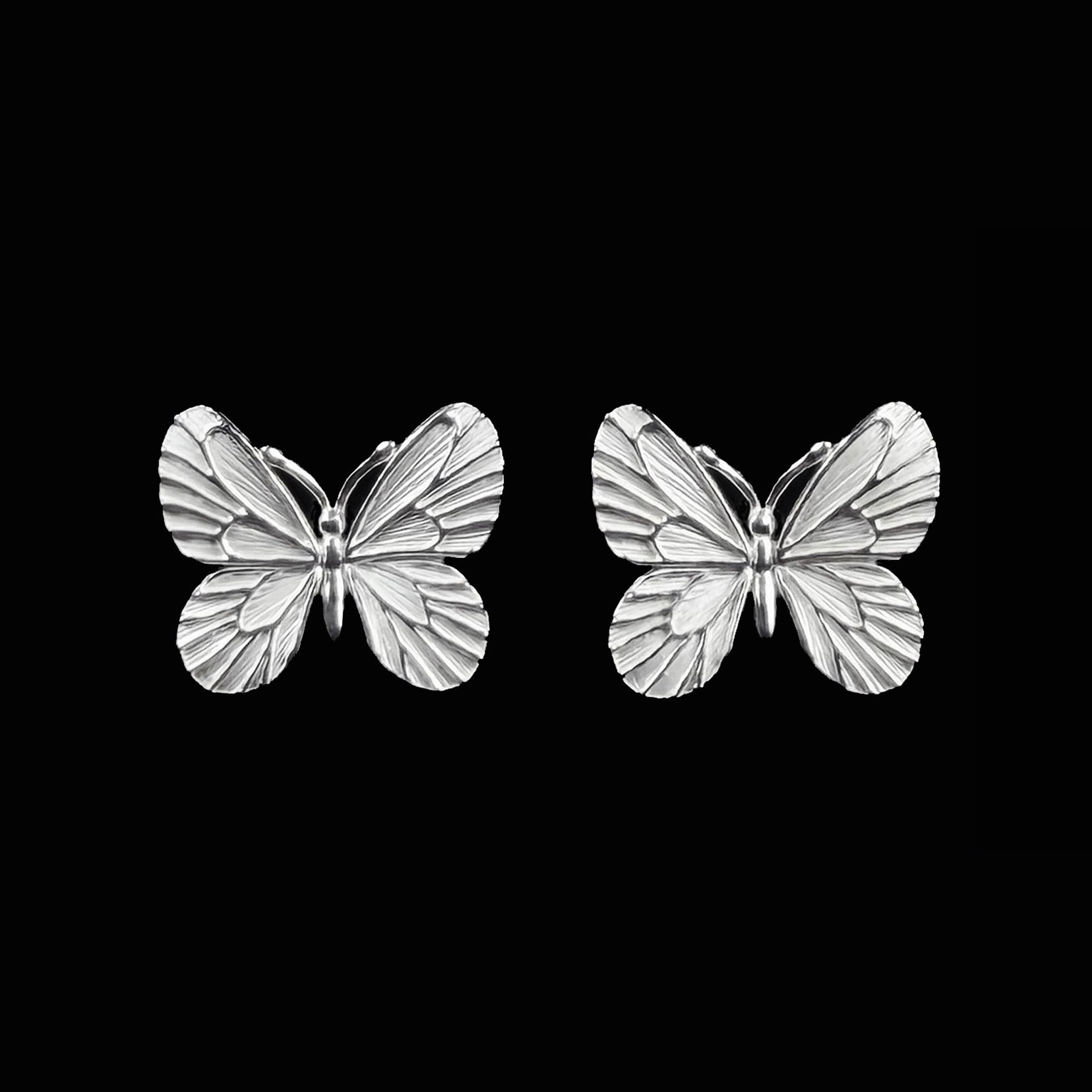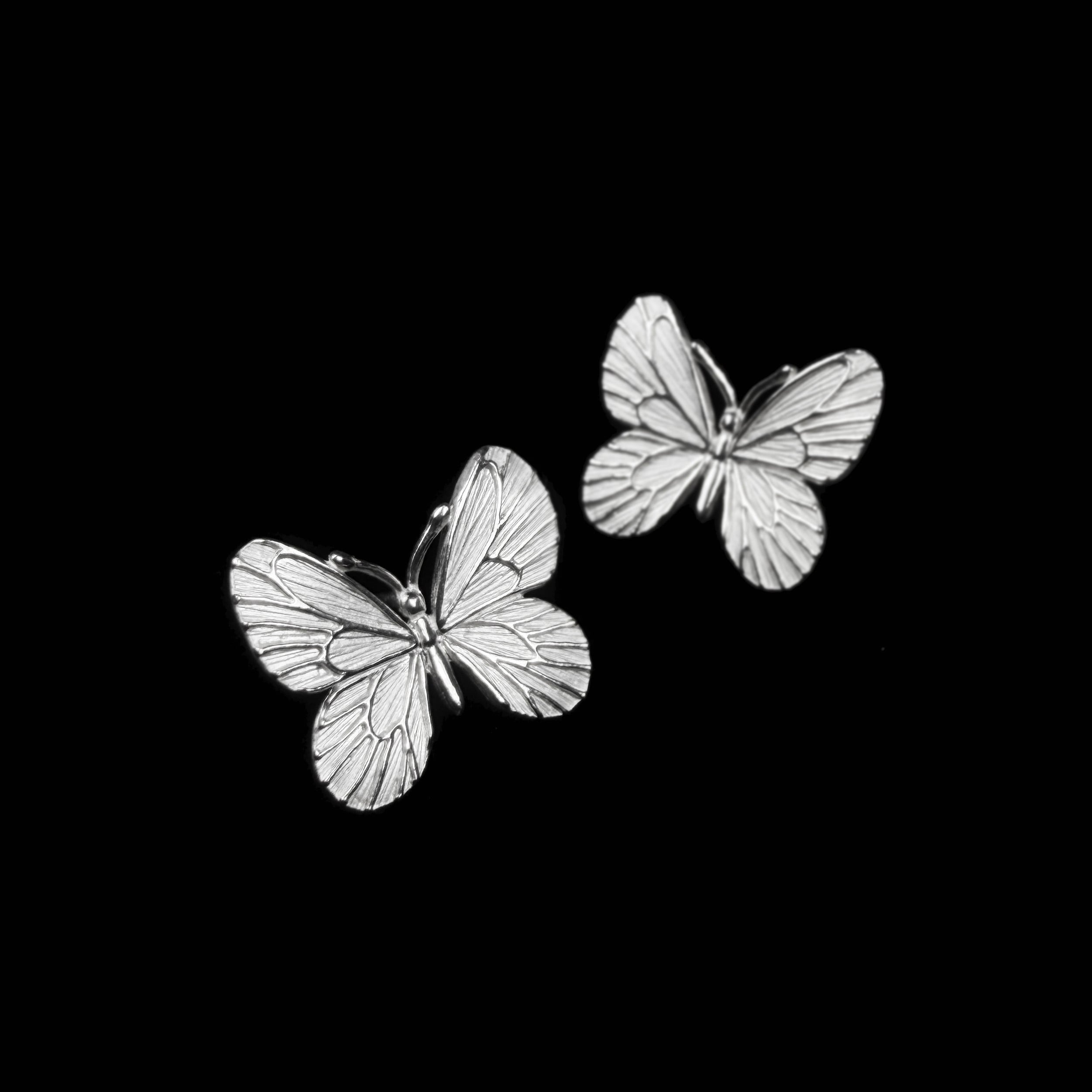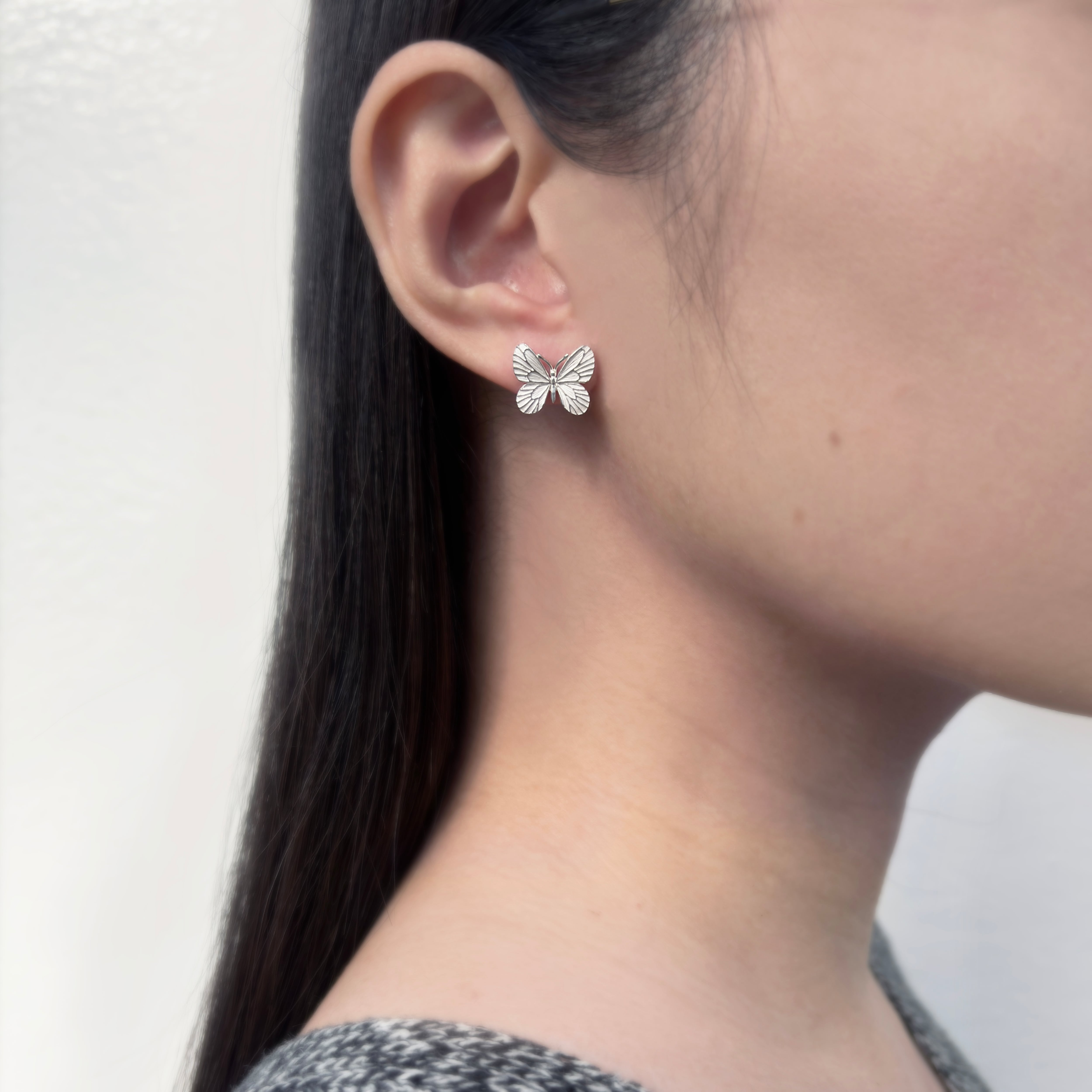 Laura|ローラ 蝶 ポスト ピアス (SV925) 白仕上げ