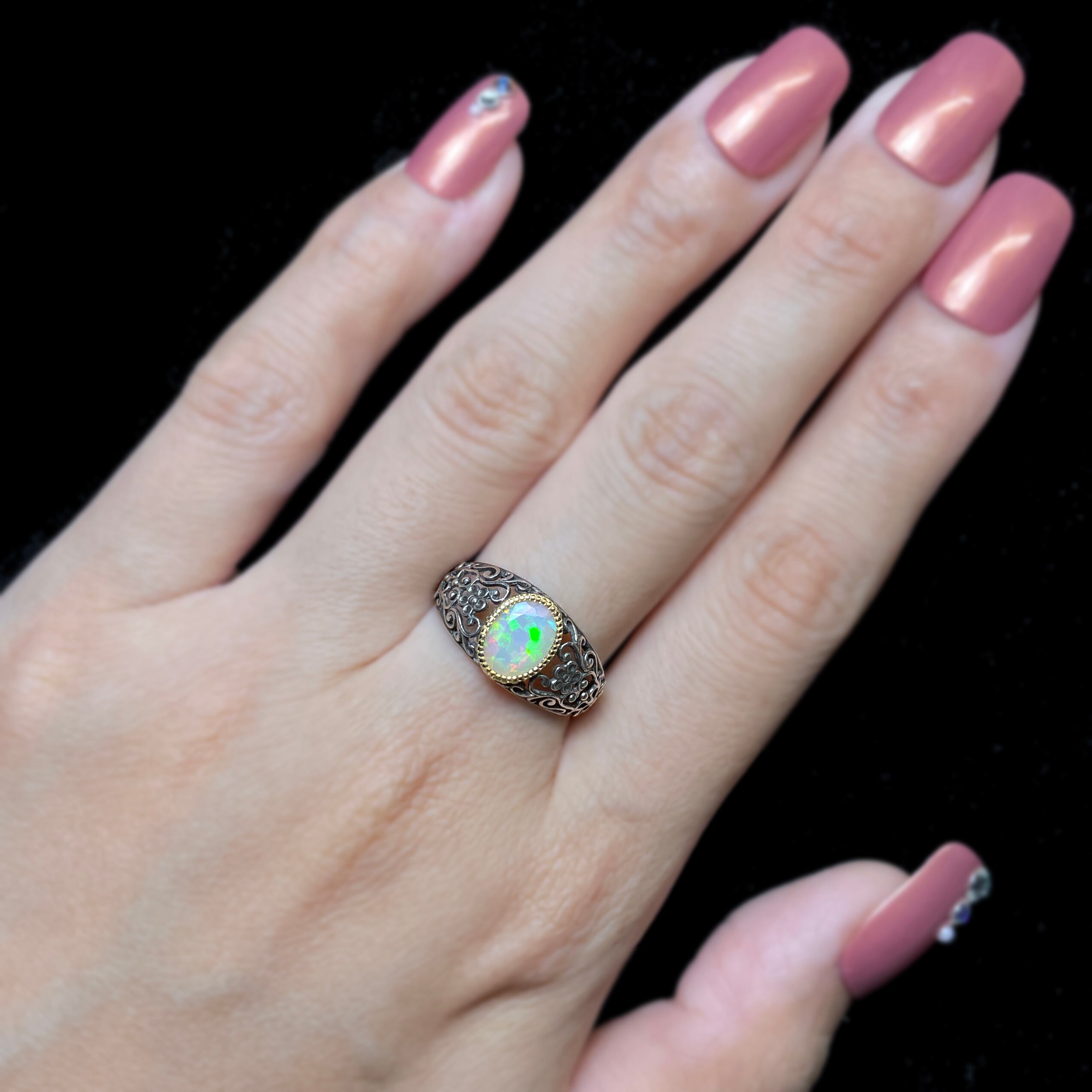 遊色が揺らめく大変美しいエチオピア産オパールを使用しております。
