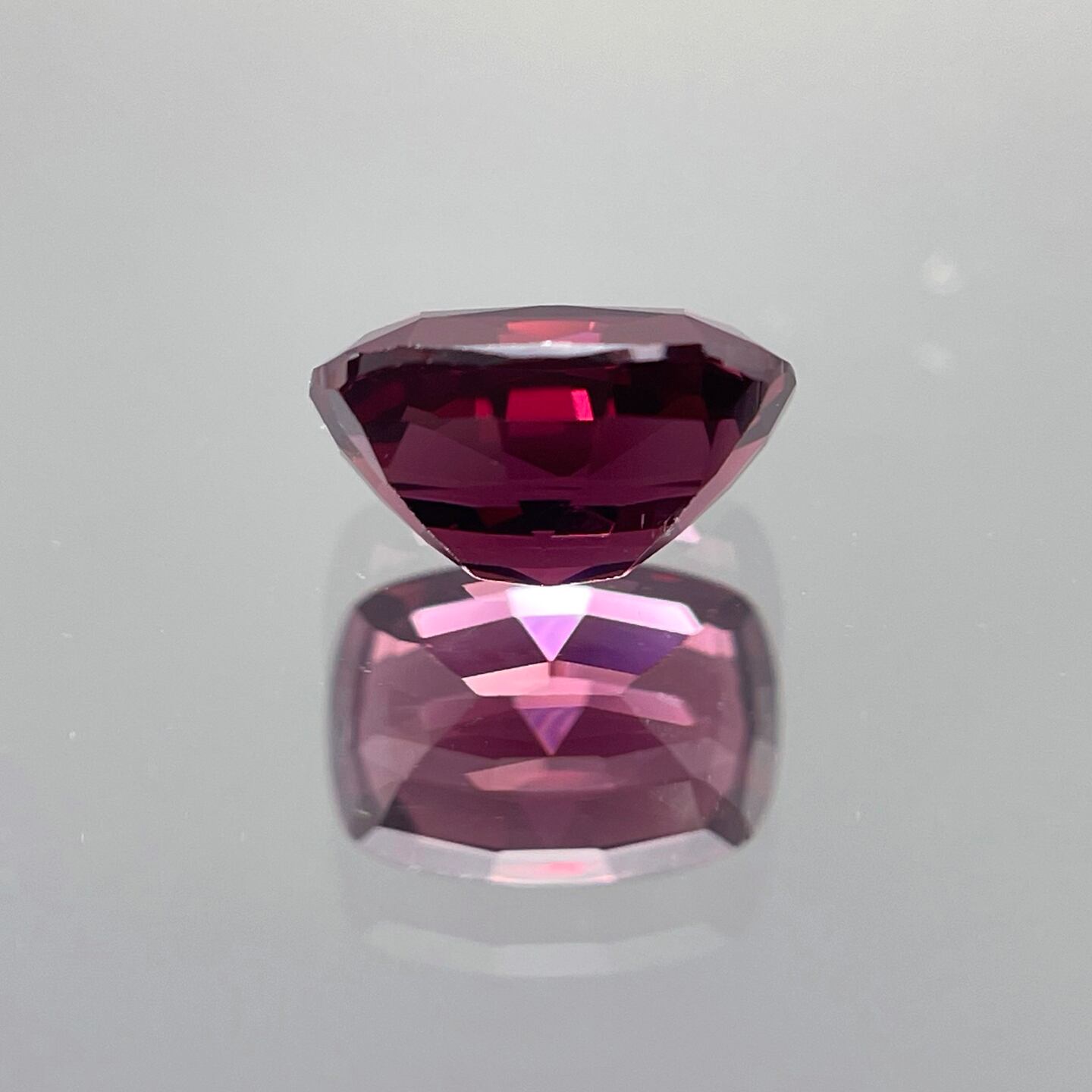 こちらのルースは落ち着いた印象の濃い赤色のため室内で見ると若干暗い印象を受けると思います。