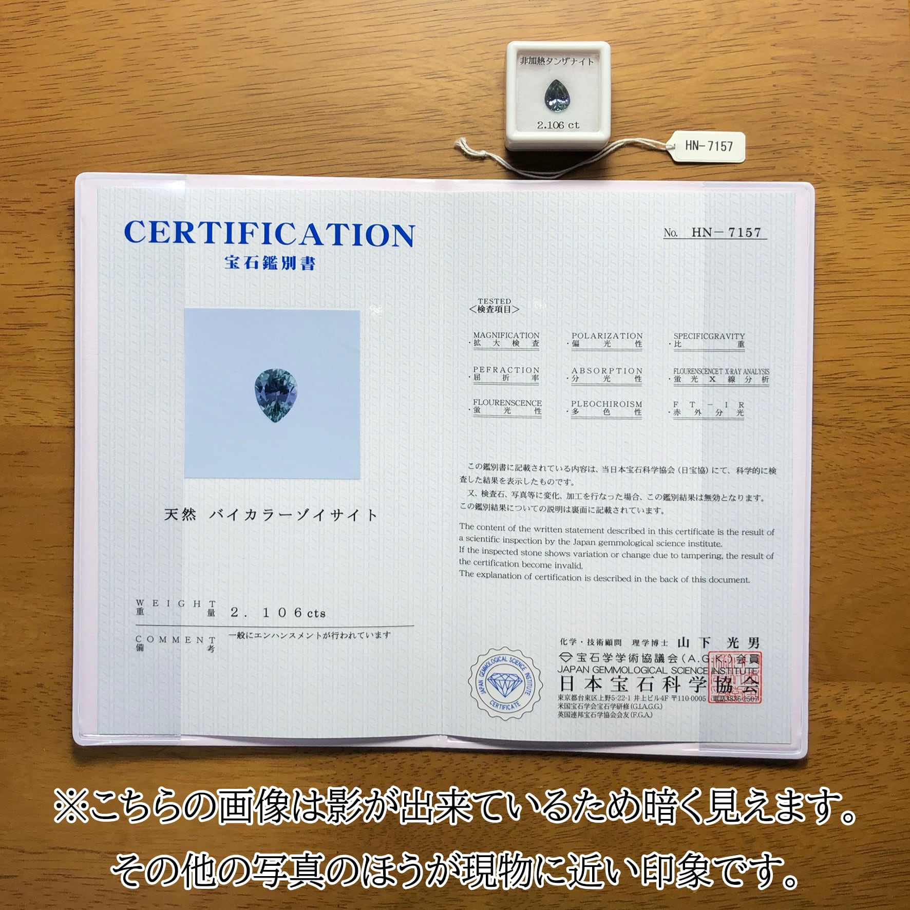 鑑別書付き 非加熱タンザナイト 2.106ct ルース バイカラー