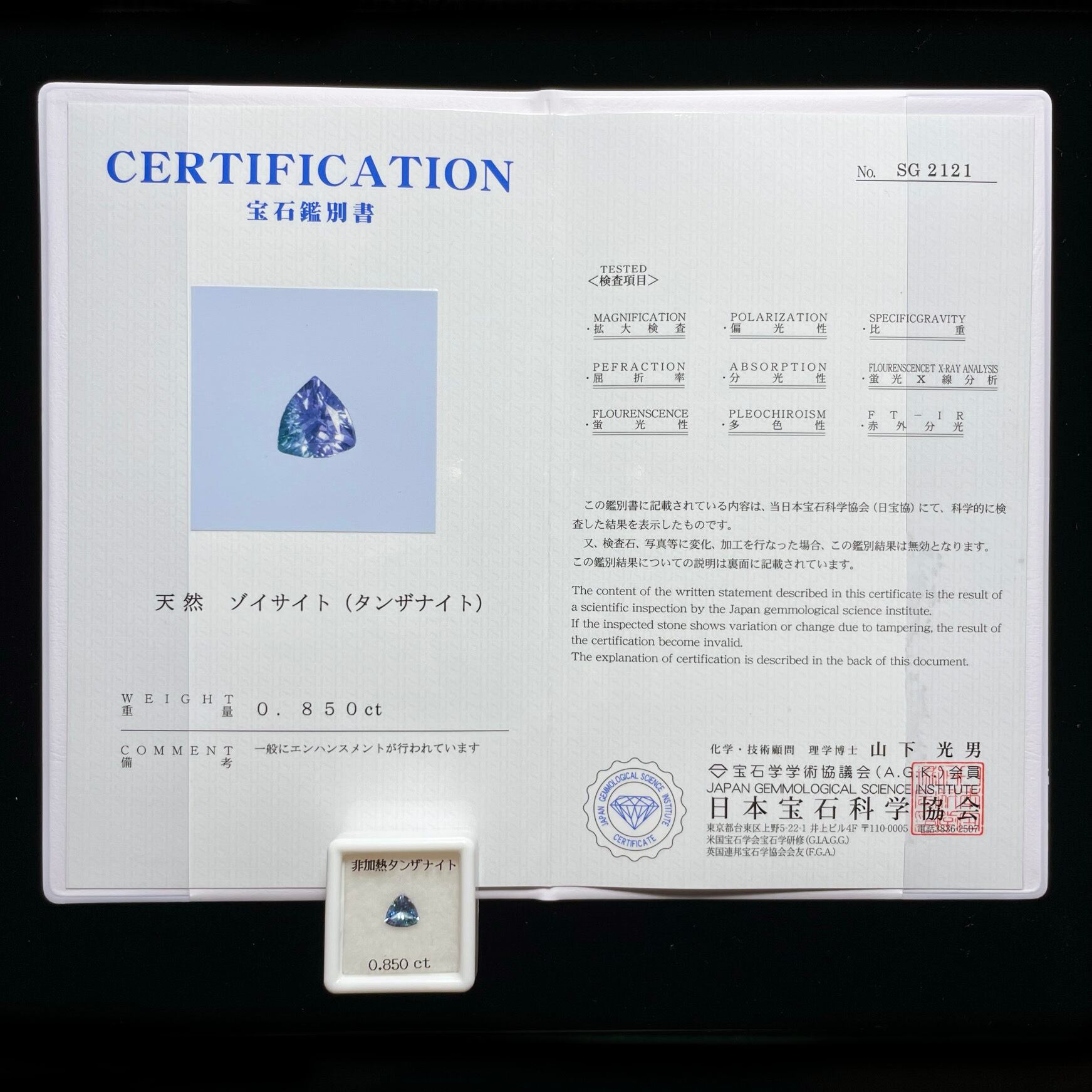 鑑別書付き 非加熱タンザナイト 0.850ct ルース トリリアント バイカラー 系
