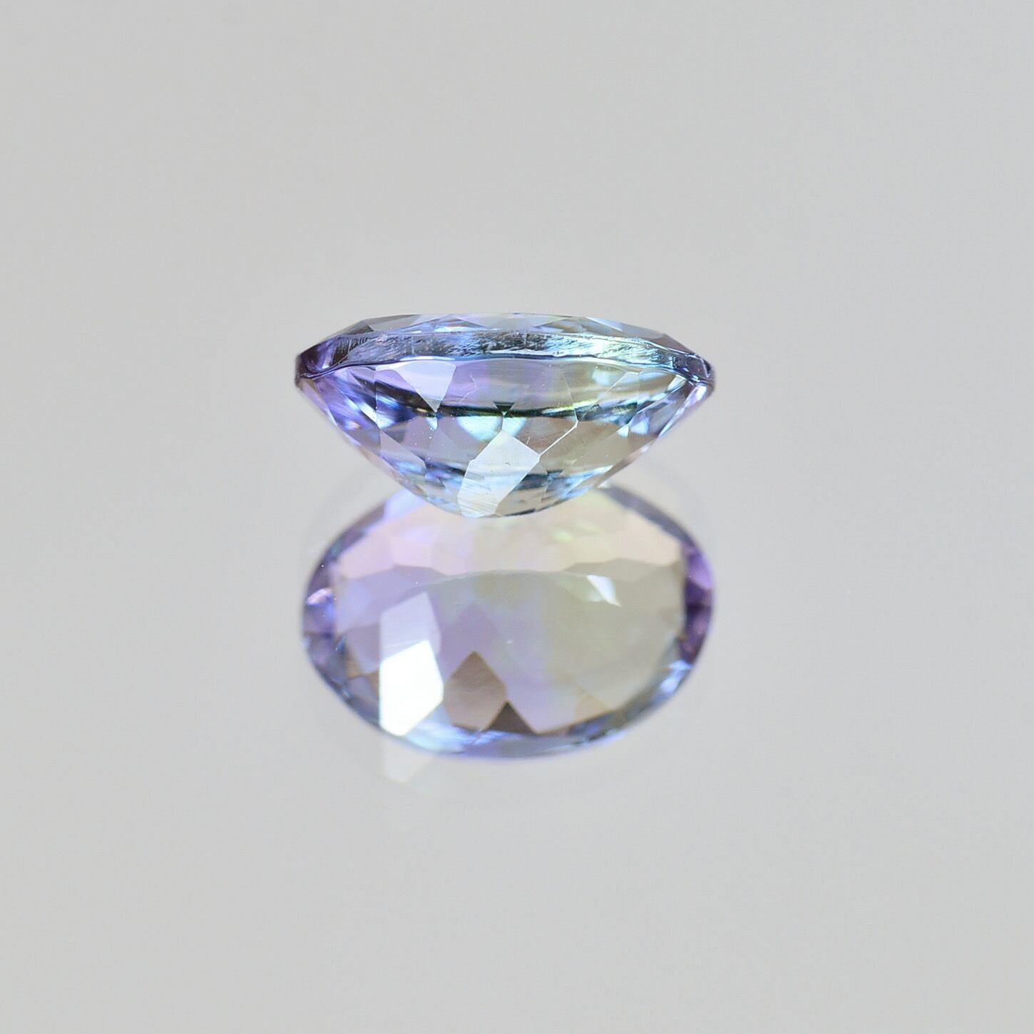 ブルーとブルーグリーンがはっきりと確認出来る美しいバイカラー系のルースで、非加熱タンザナイトの特徴である多色性が楽しめるルースです。