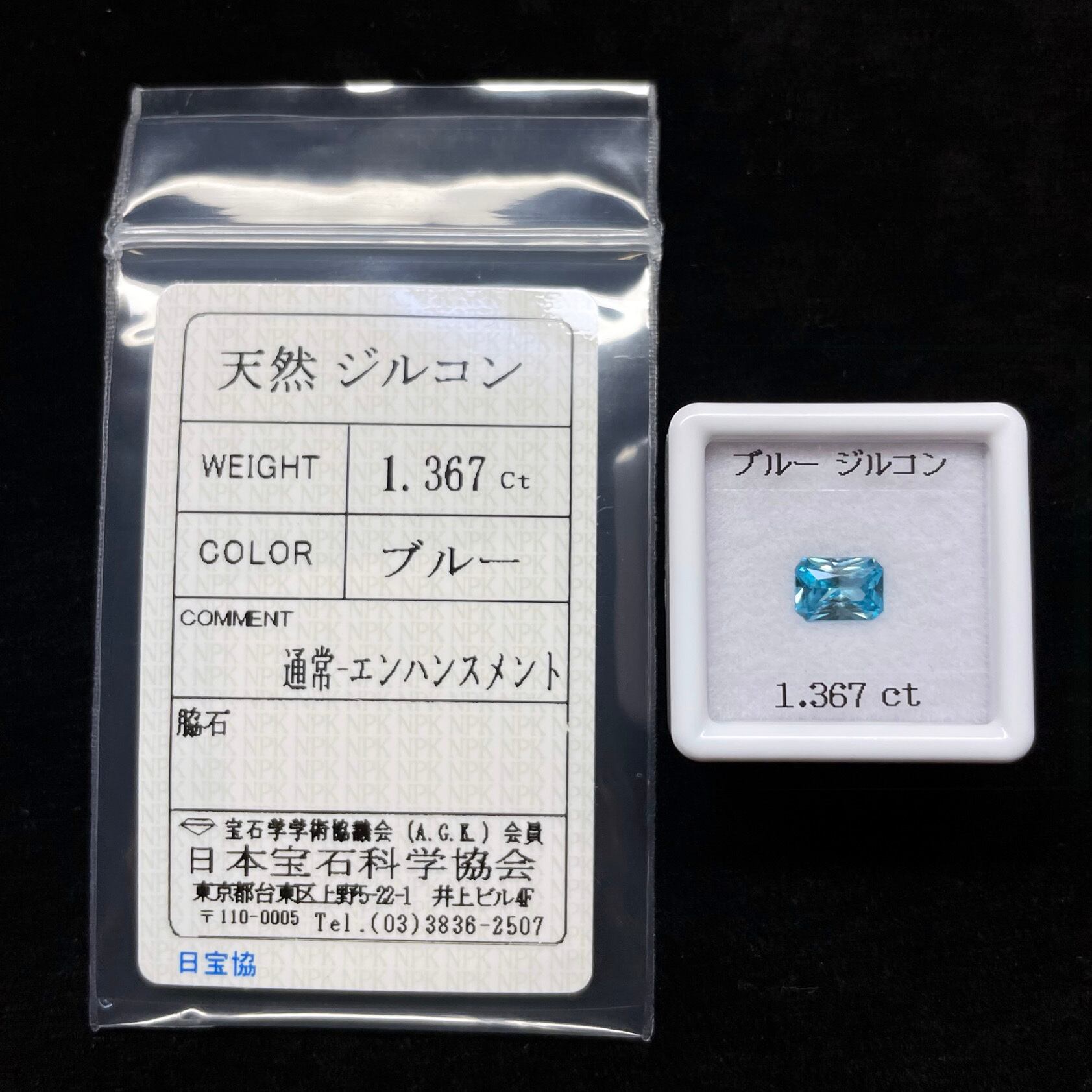 ソ付 ブルー ジルコン 1.367ct ルース ラディアント